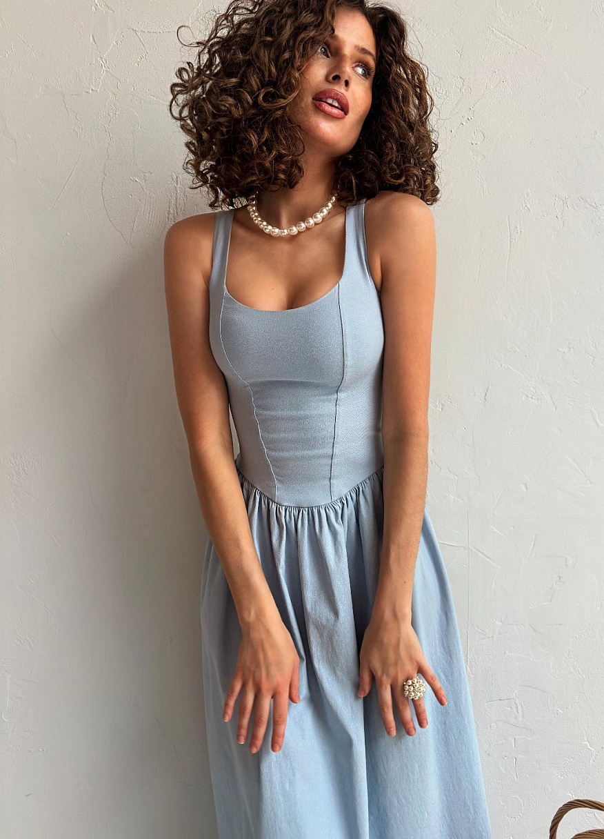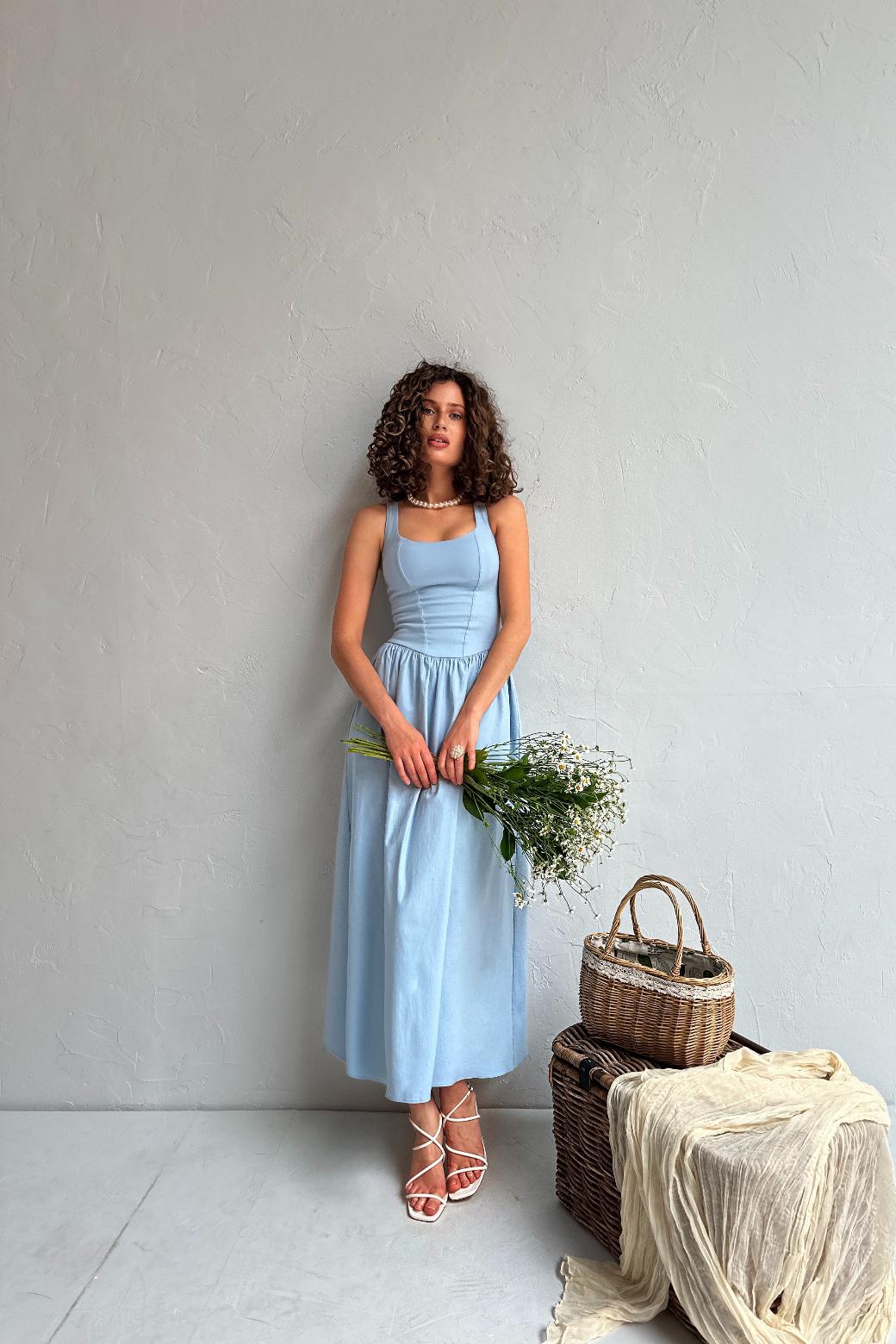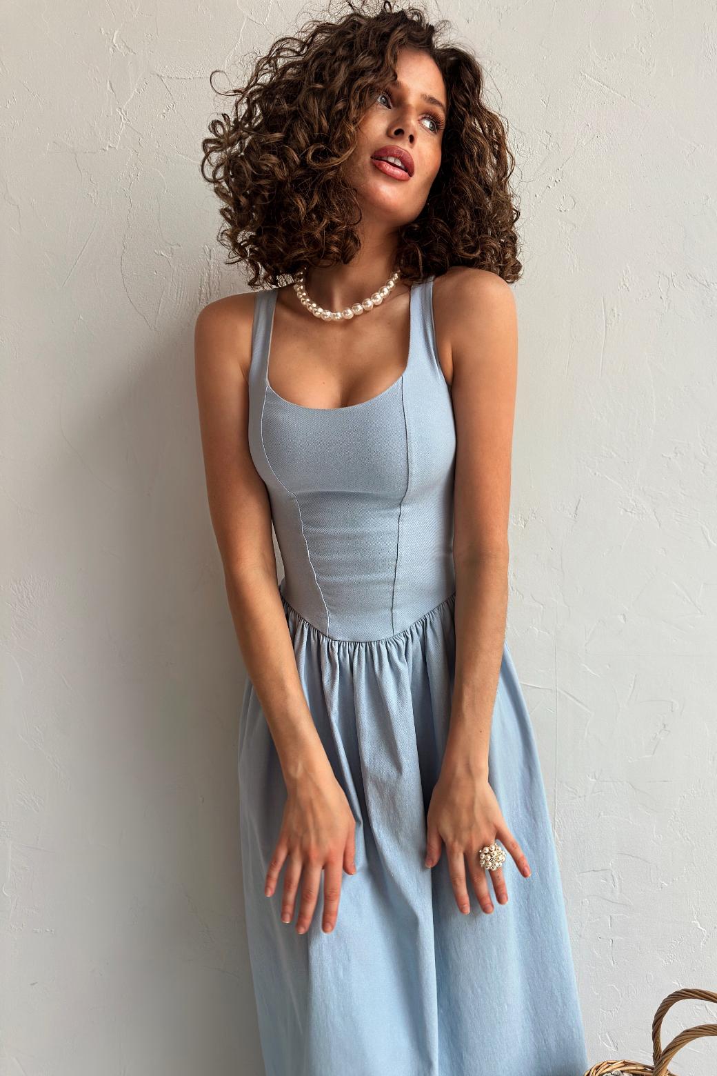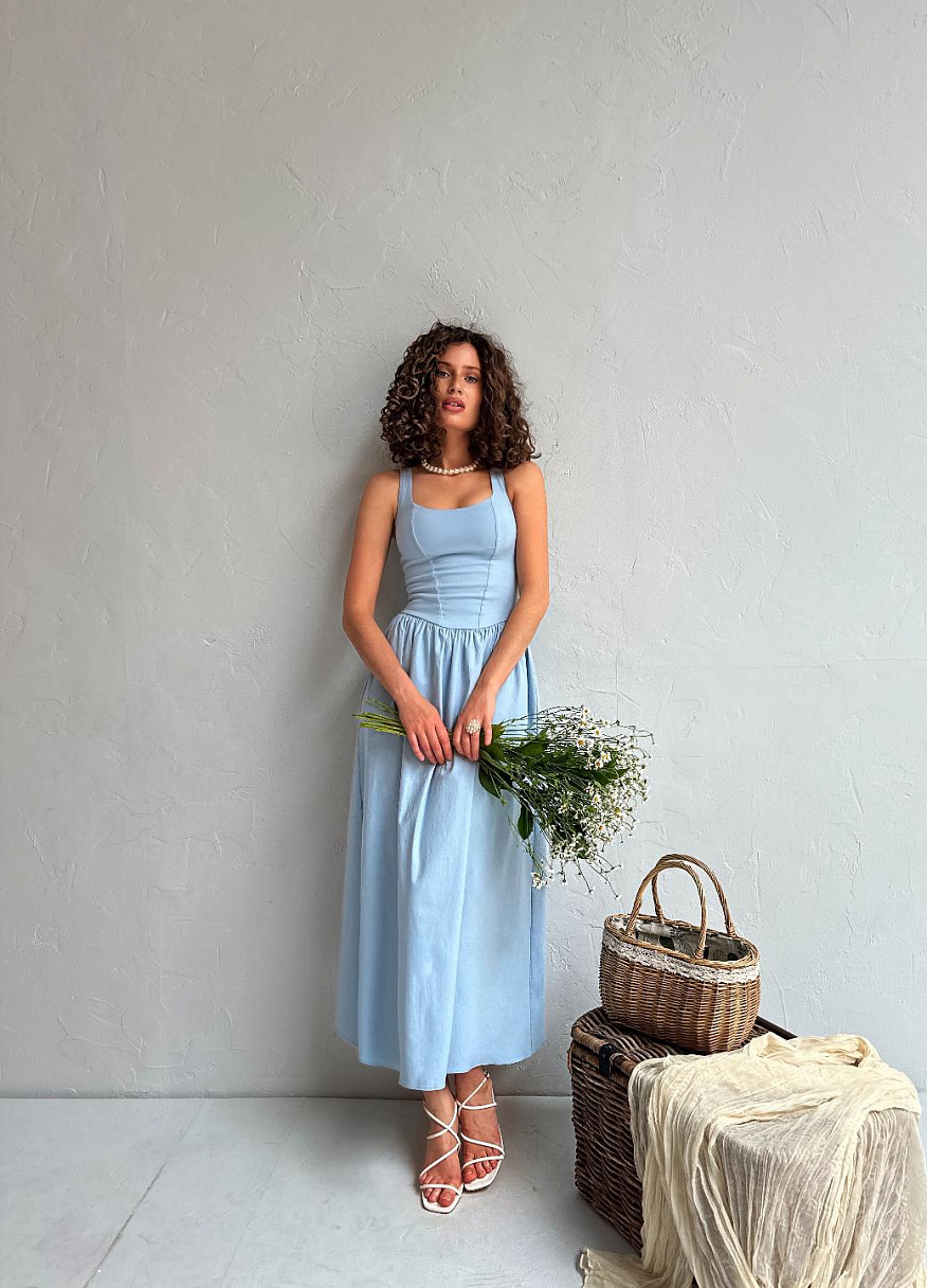 Платье "Тьерри" голубое — дизайнерская женская одежда от Яны Лукачер | Российское производство