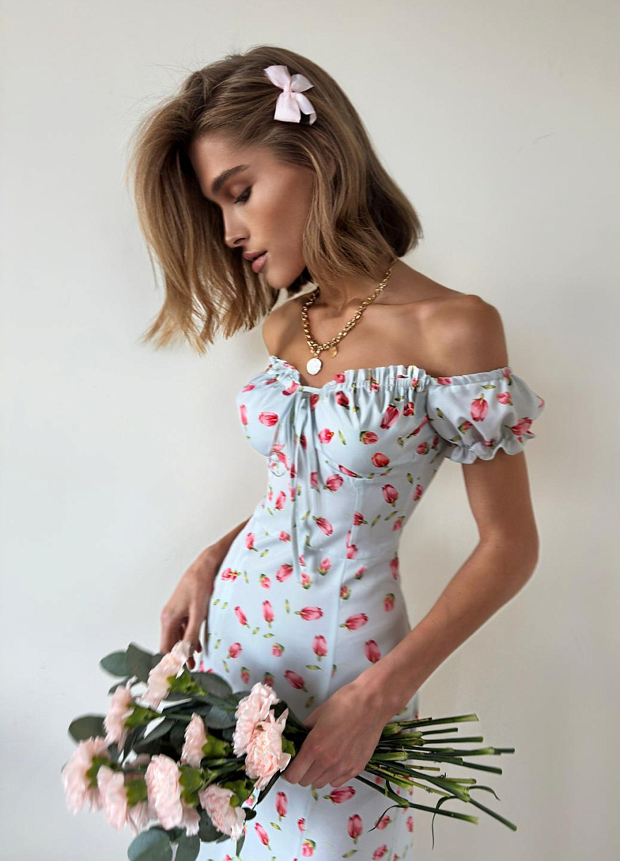 Эластичные сборки надёжно удерживают платье на плечах и груди, позволяя носить его со спущенными плечами — естественно и непринуждённо.