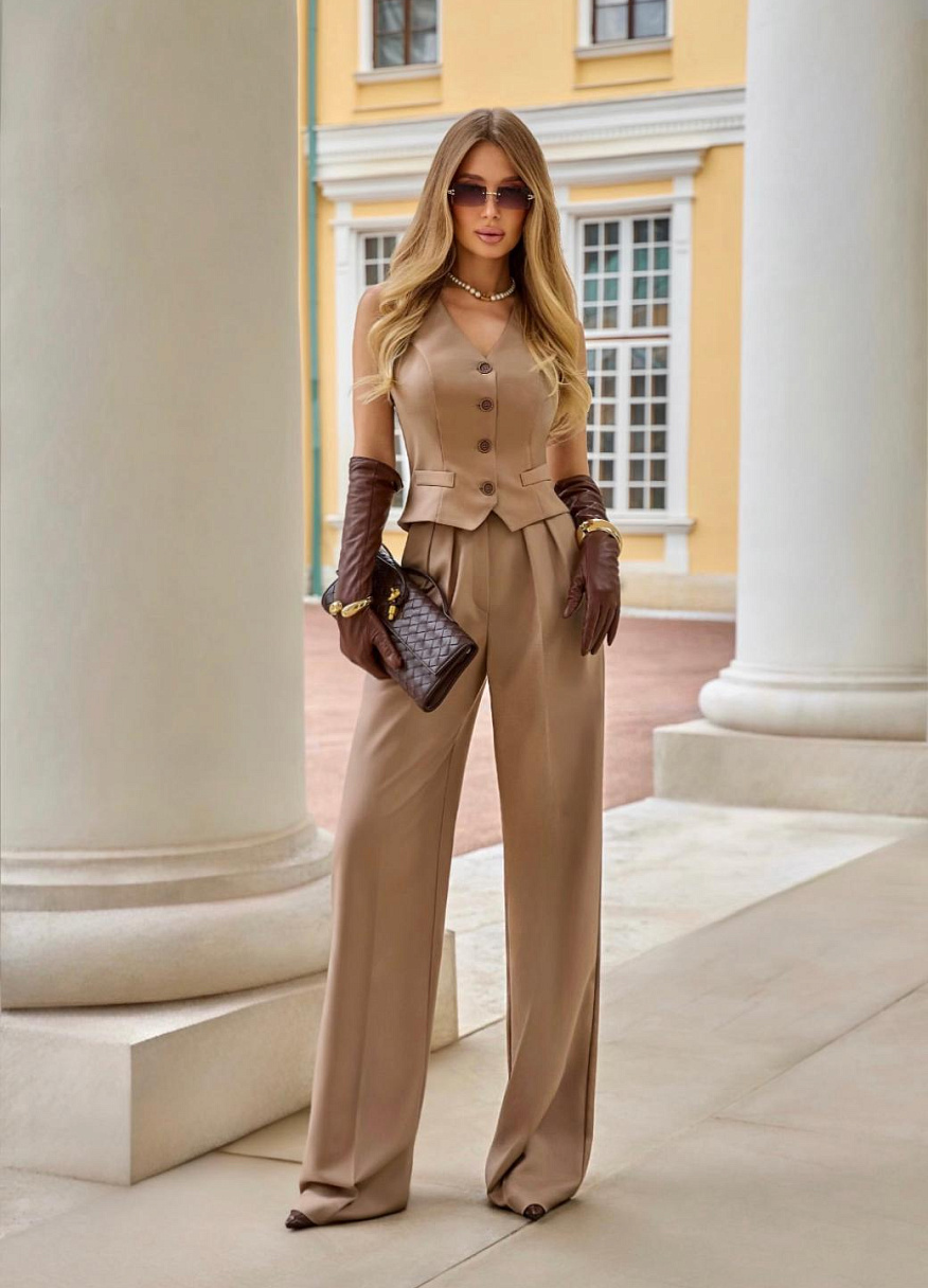 Жилет "Бродвей" песочный — дизайнерская женская одежда от Яны Лукачер | Российское производство