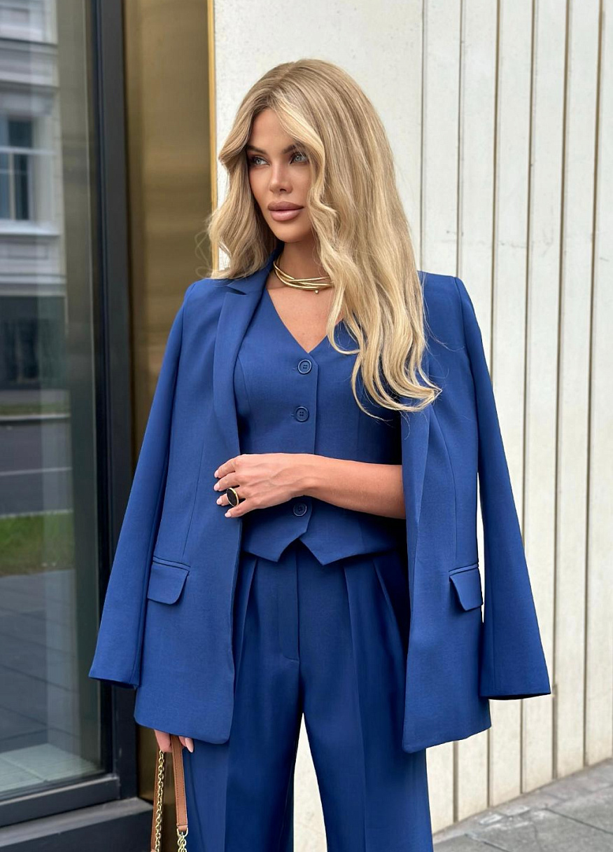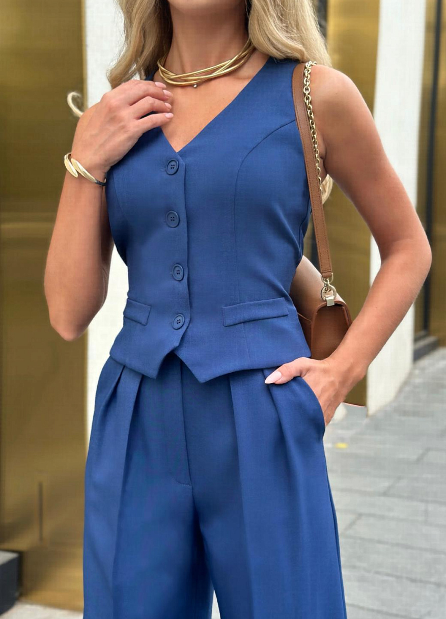 Жилет "Бродвей" синий — дизайнерская женская одежда от Яны Лукачер | Российское производство